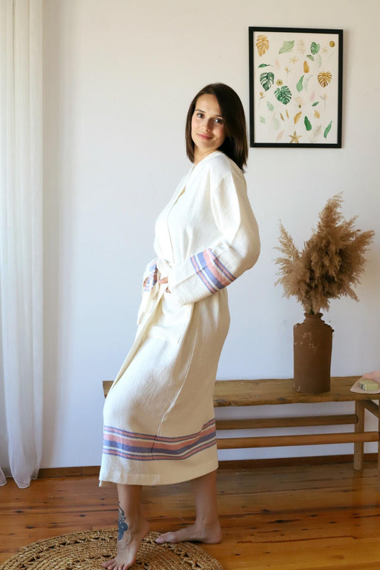 HAZAL Su Yolu Desenli Peştemal %100 Pamuk - Pembe